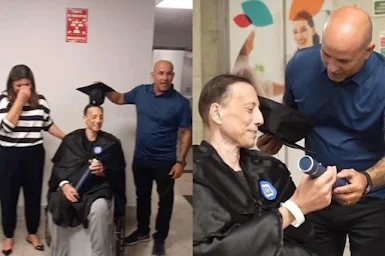 esposa, Graziela Gonçalves Gazaro, prepararam uma festa de formatura para ele.